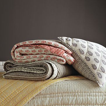 You will notice on the handmade item page the Hand-Blocked quilts from India, and when you read the description you will notice that they are cotton voile. Voile! Ha! I knew it would be perfect for bedding. You see, Jacquie and I were just discussing the use of voile in quilting. She had not handled it much but I told her I thought that the feel of it would be lovely in a quilt because it is so soft. And here is West Elm to back me up.